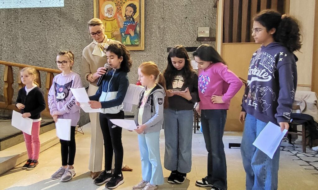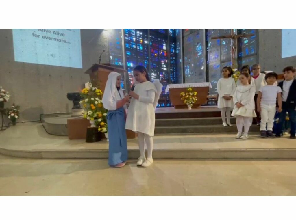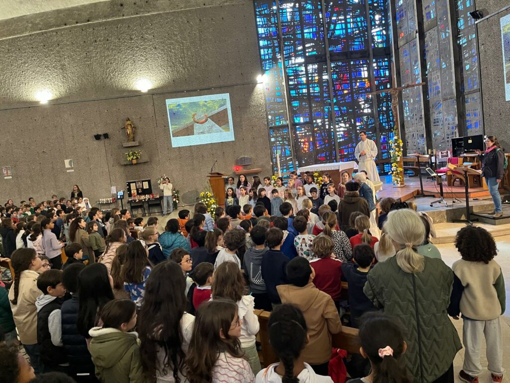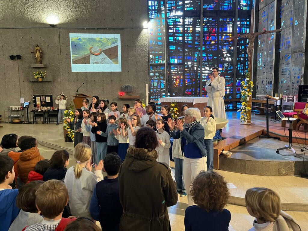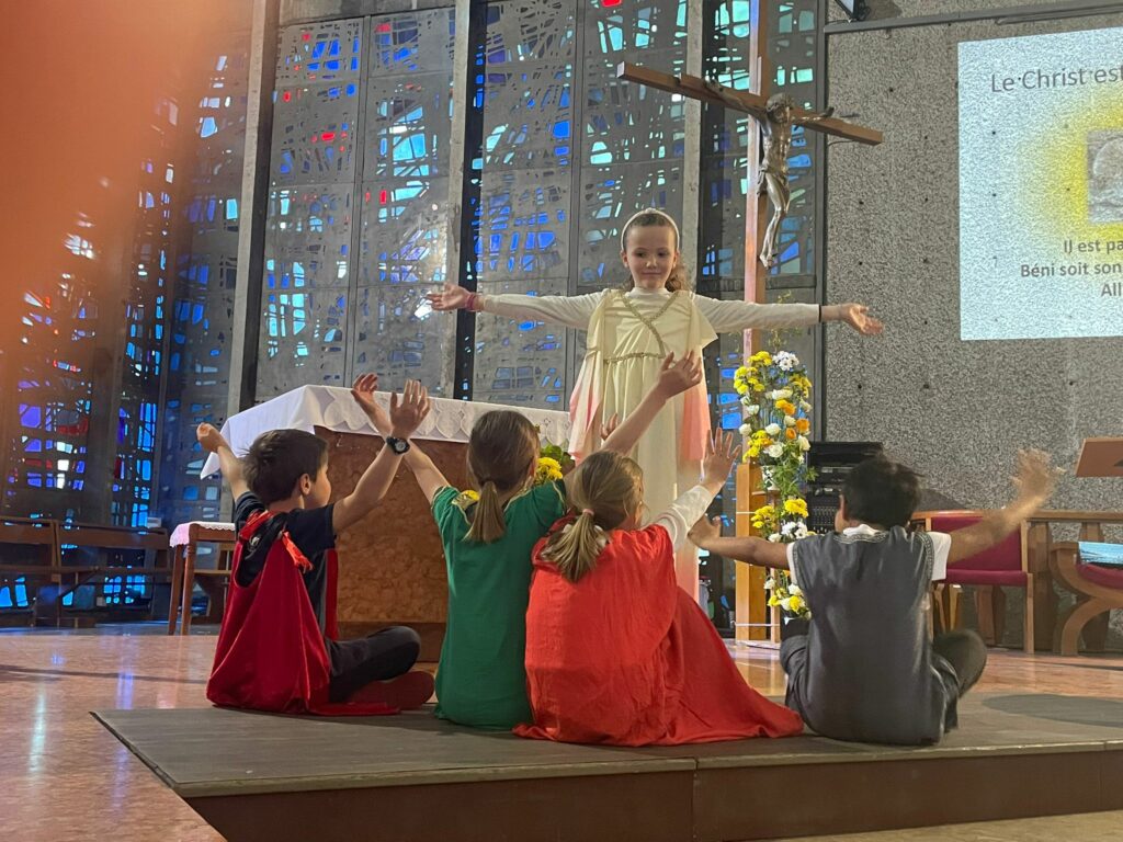 Cette célébration, à la fois joyeuse et vivante, a été rythmée par le mime de l’Évangile du matin de la Résurrection, des chants en anglais, en espagnol et en français, de belles intentions de prière, ainsi que par les magnifiques dessins réalisés par les élèves.