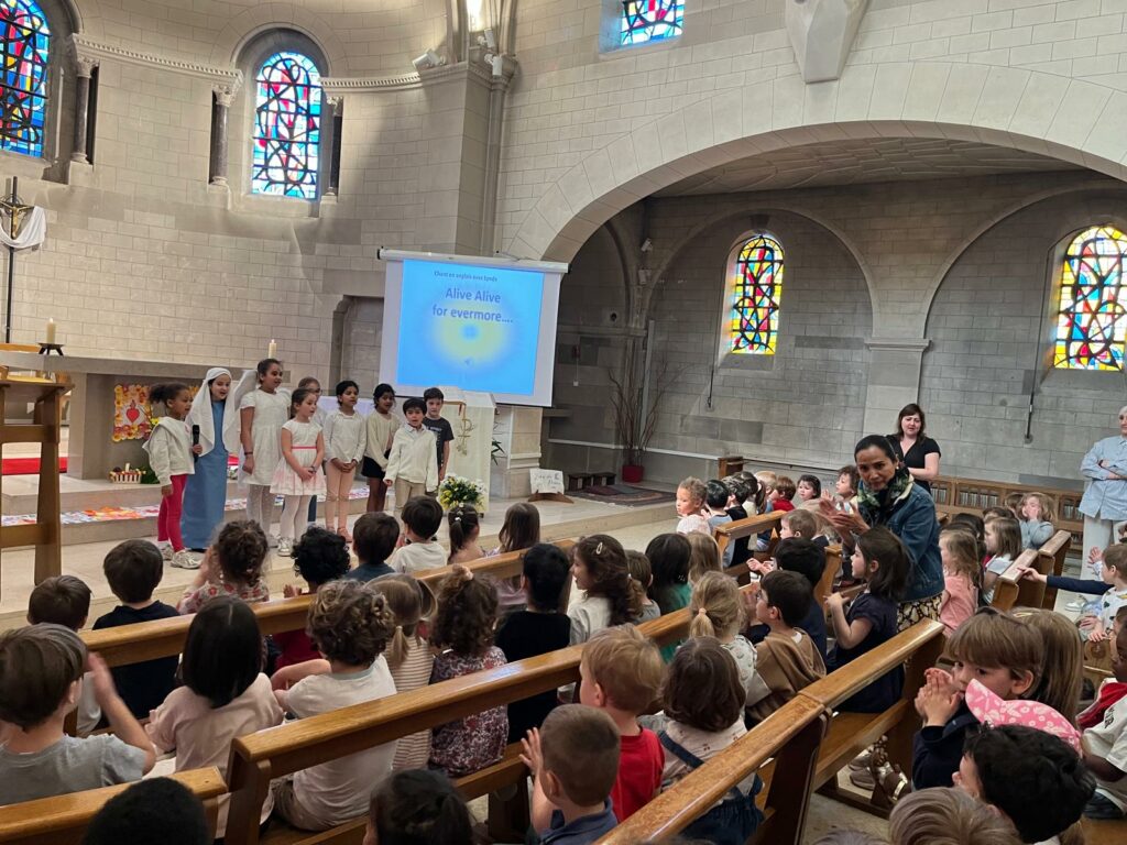 Ce jeudi 9 avril, les élèves de maternelle, de CP ainsi que les élèves de la classe UEEA se sont rassemblés à la chapelle de l’Institution pour célébrer Pâques.