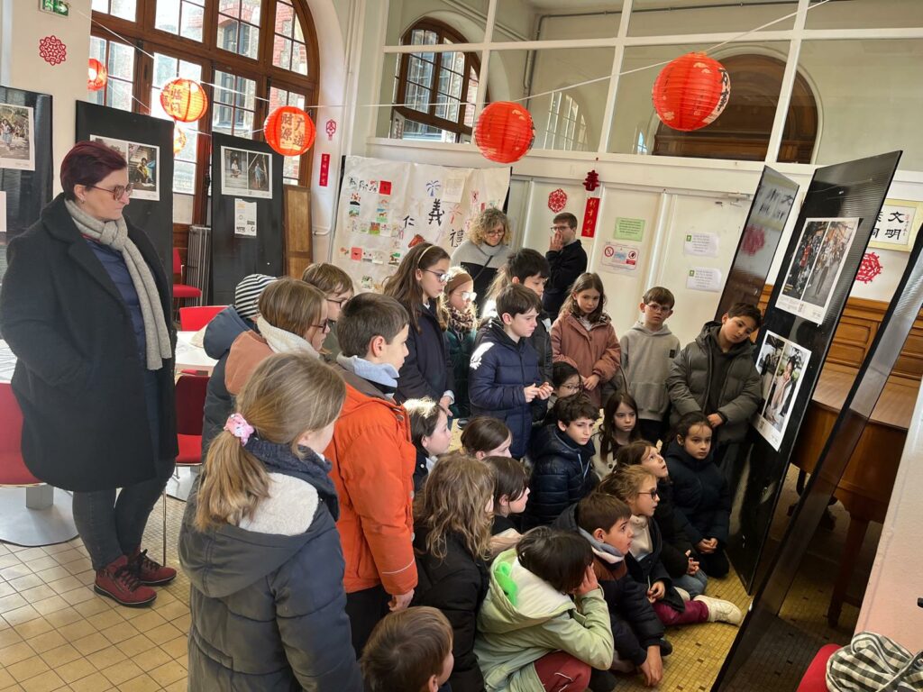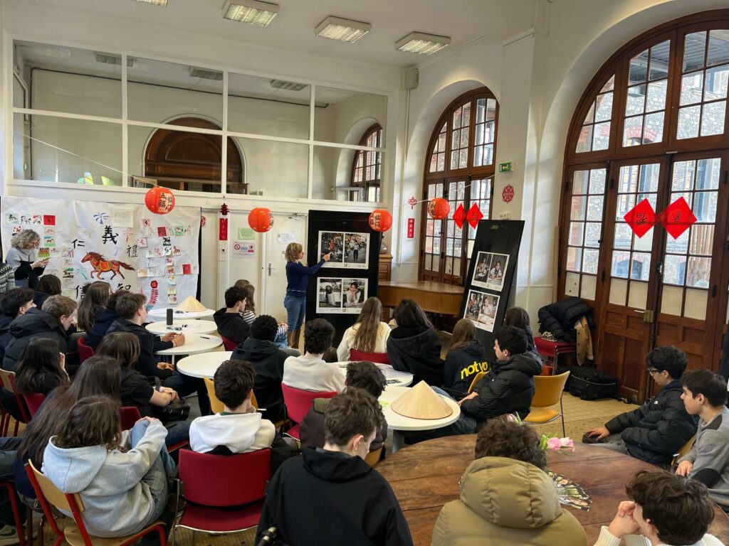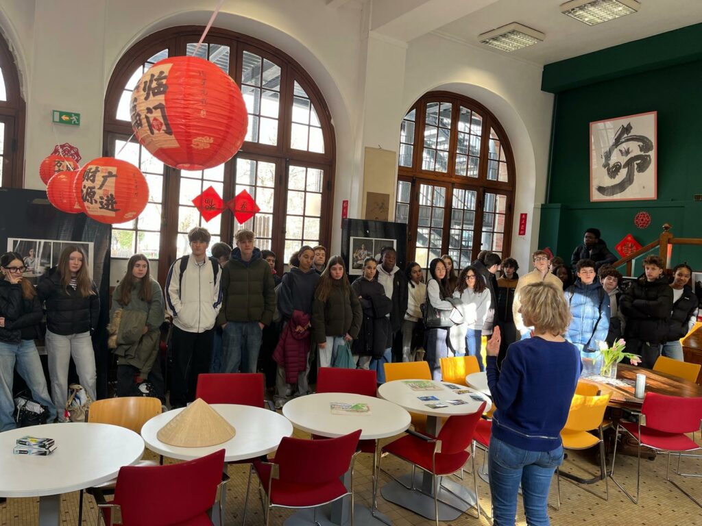 Ce lundi 16 février, l’association Les Enfants du Mékong est intervenue auprès des élèves de CE2K, 3ᵉB, 6ᵉ Segpa et 2nde1 pour expliquer et commenter l’exposition « De la rue au cartable ».