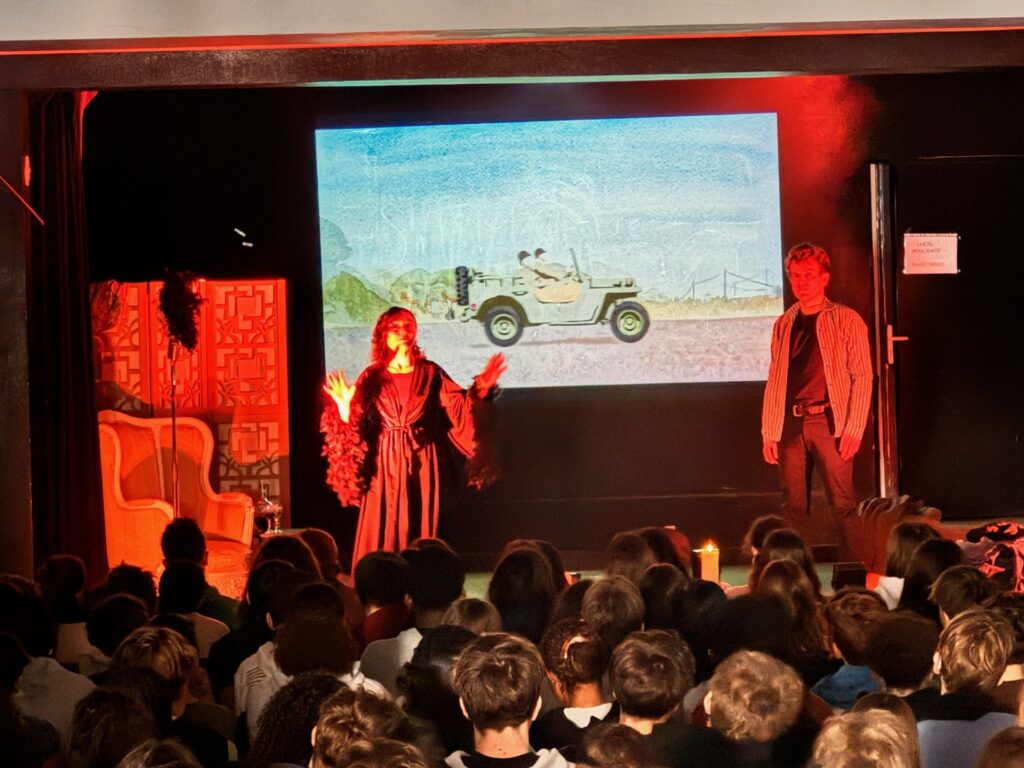 Lundi 02 février, dans le cadre de la journée mémorielle dédiée à l’Escadron Bleu durant la Seconde Guerre mondiale, les élèves de 3ᵉ ont eu l’occasion d’assister à une pièce de théâtre poignante, retraçant des parcours de vie et d’engagement, ainsi qu’à une exposition de voitures d’époque qui a permis de plonger au cœur de l’Histoire.